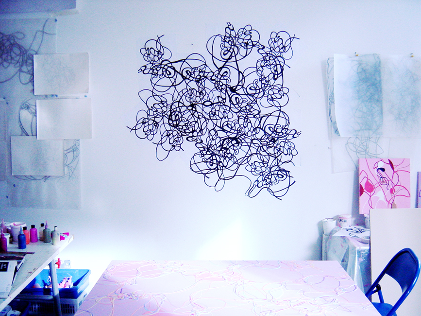 Stanley Picker Fellowship studio wal, mixed media, variable dimension, 2002